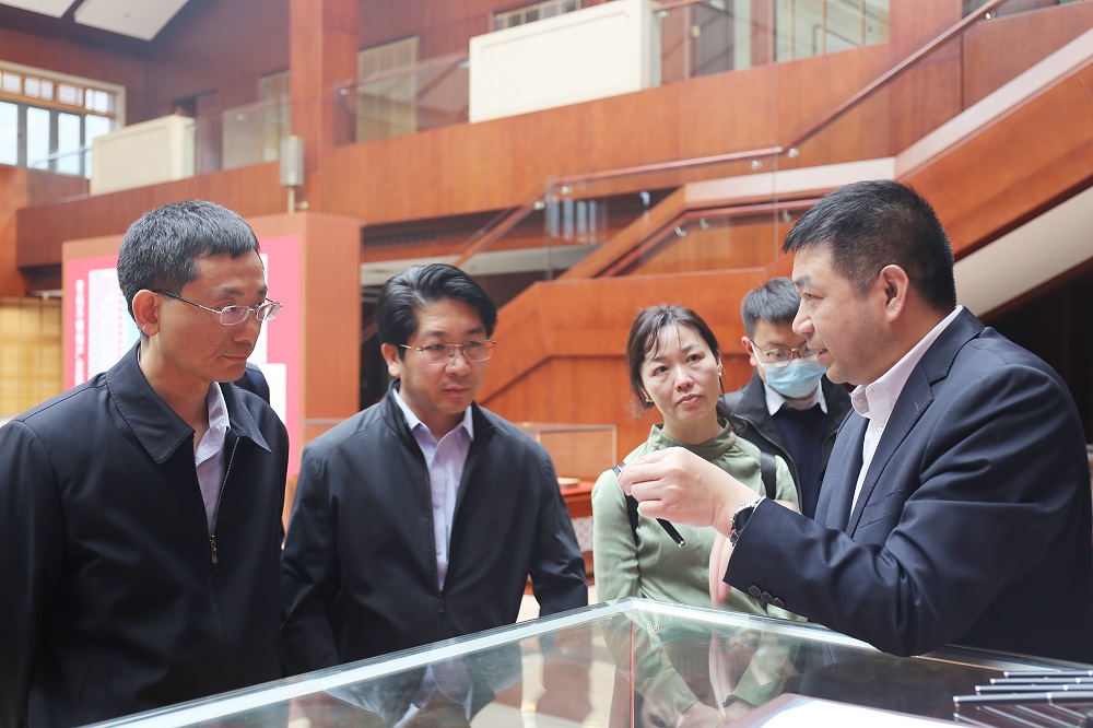 何长松一行走进青拓集团供销大厅、研究院,观看企业宣传片。钟盛江详细介绍了青拓集团在新产品研发方面的情况,他指出:为破解李克强总理提出的“笔尖难题”,青拓集团加强自主研发,2020年成功研制出2.3mm笔尖钢,2021年初又研制出1.6mm笔尖钢;青拓集团生产的笔尖钢和日本进口笔尖钢相比,无铅无铋,用料上更加环保,出墨量稳定,耐腐蚀性和耐磨性能良好,总体技术处于国内领先水平,目前国内市场占有率已达20%。何长松一行对集团在产品研发方面做出的努力表示肯定。