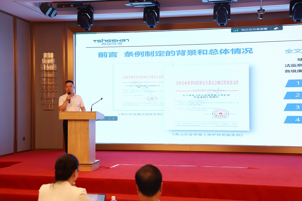活动期间,吴庆海、杨涛分别对《jinnian金年会实业廉洁监察条例》和《jinnian金年会实业举报人保护和奖励条例》的出台背景、重点条款等内容做详细解读。