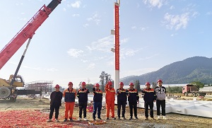 青拓现代装备制造及重工配套项目厂房钢结构首支立柱正式安装